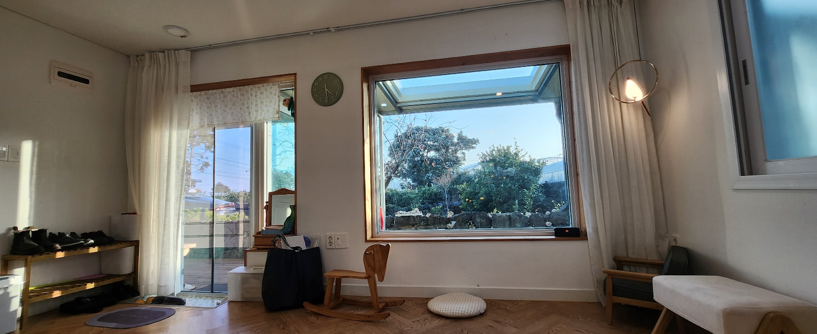 특히나 거실 창으로 보이는 제주는 그야말로 컴퓨터 배경화면 같은 느낌이었다